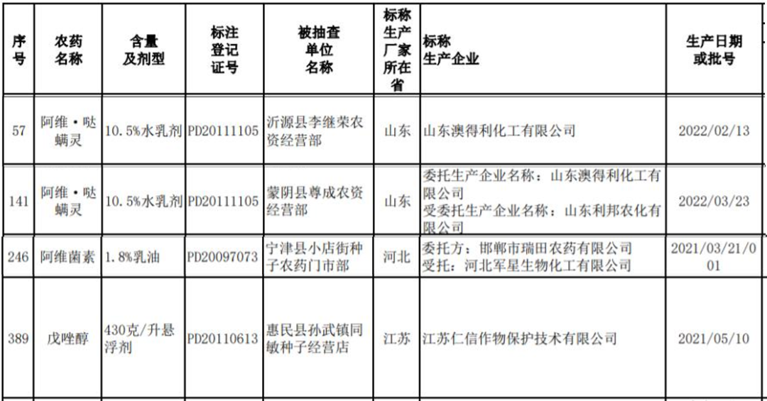 据了解,本次通报共有410个批次的农药产品,涉及江苏、广东、河北、安徽、河南、江西等22个省(市、自治区)的271家农药生产企业和省内229家农药经营单位。