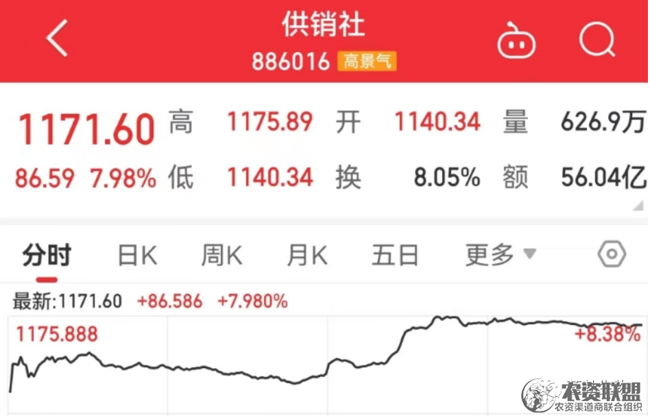 自从供销社复出话题火爆之后,供销社概念股开盘领涨。